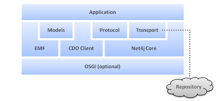 The architecture of a CDO application is characterized by its mandatory dependency on EMF, the Eclipse Modeling Framework. Most of the time an application interacts with the object graph of the model through standard EMF APIs because CDO model graph objects are EObjects. While CDO's basic functionality integrates nicely and transparently with EMF's extension mechanisms some of the more advanced functions may require to add direct dependencies on CDO to your application code.